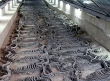 A burial pit similar to one recently excavated in the Henan province, believed to contain as many as 100 horse skeletons. Archaeologists digging in the Henan Province in